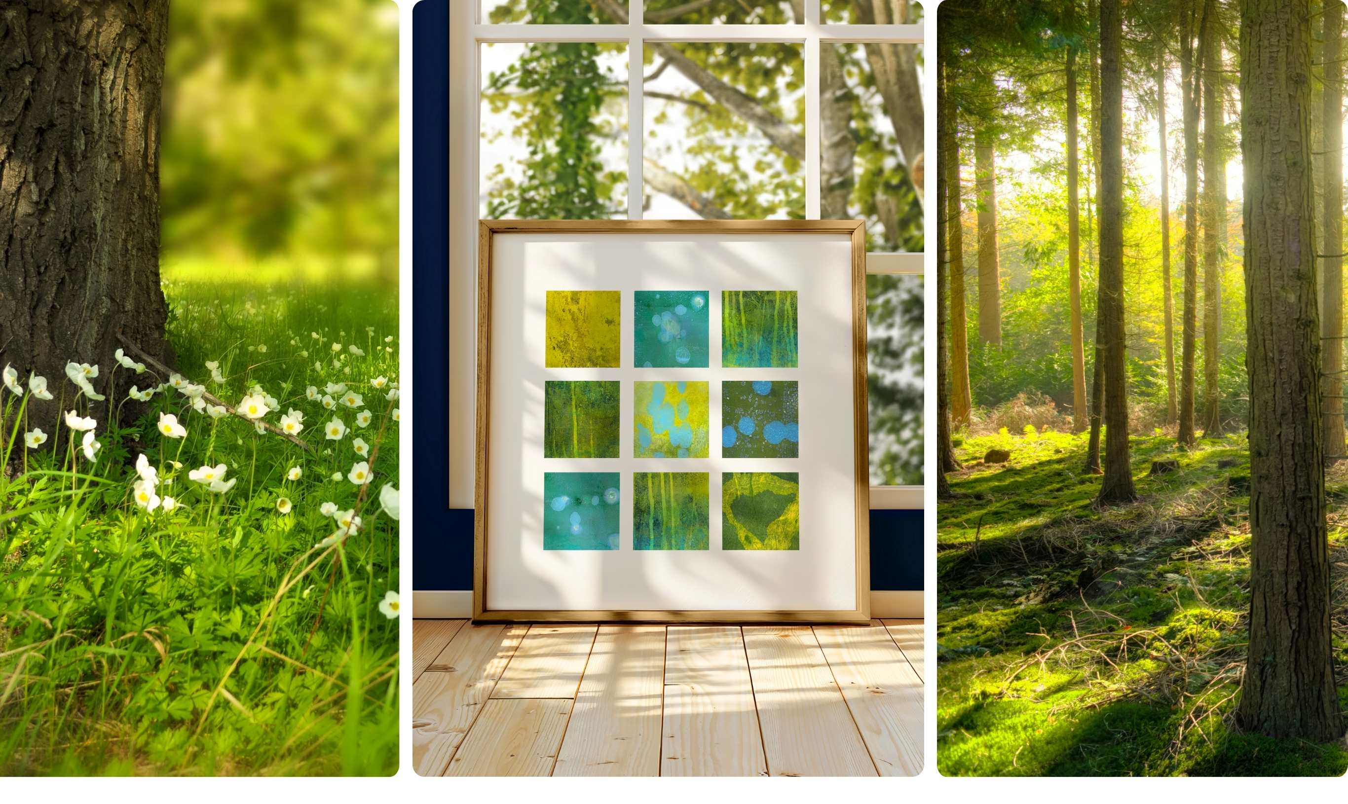 With vibrant colours and earthy, woodland shades, these premium giclée art prints evoke the timeless wonder of sunlight dancing through trees.